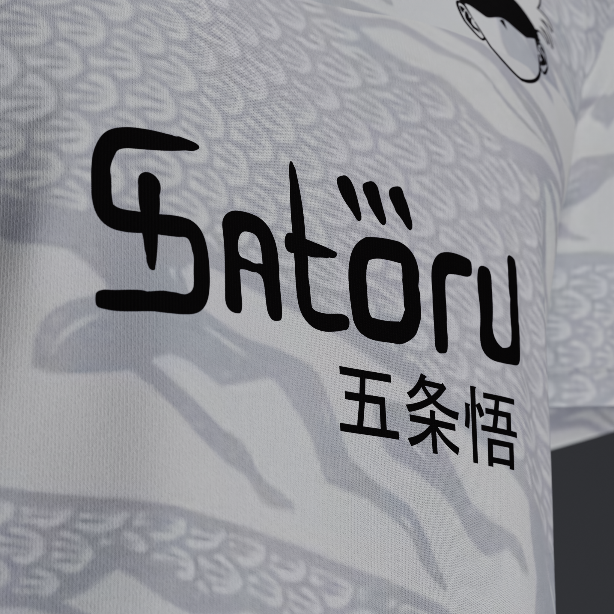 Dive into the infinite power of Gojo with this jersey. Inherit his absolute mastery and impose your style with the aura of the most powerful exorcist from Jujutsu Kaisen.