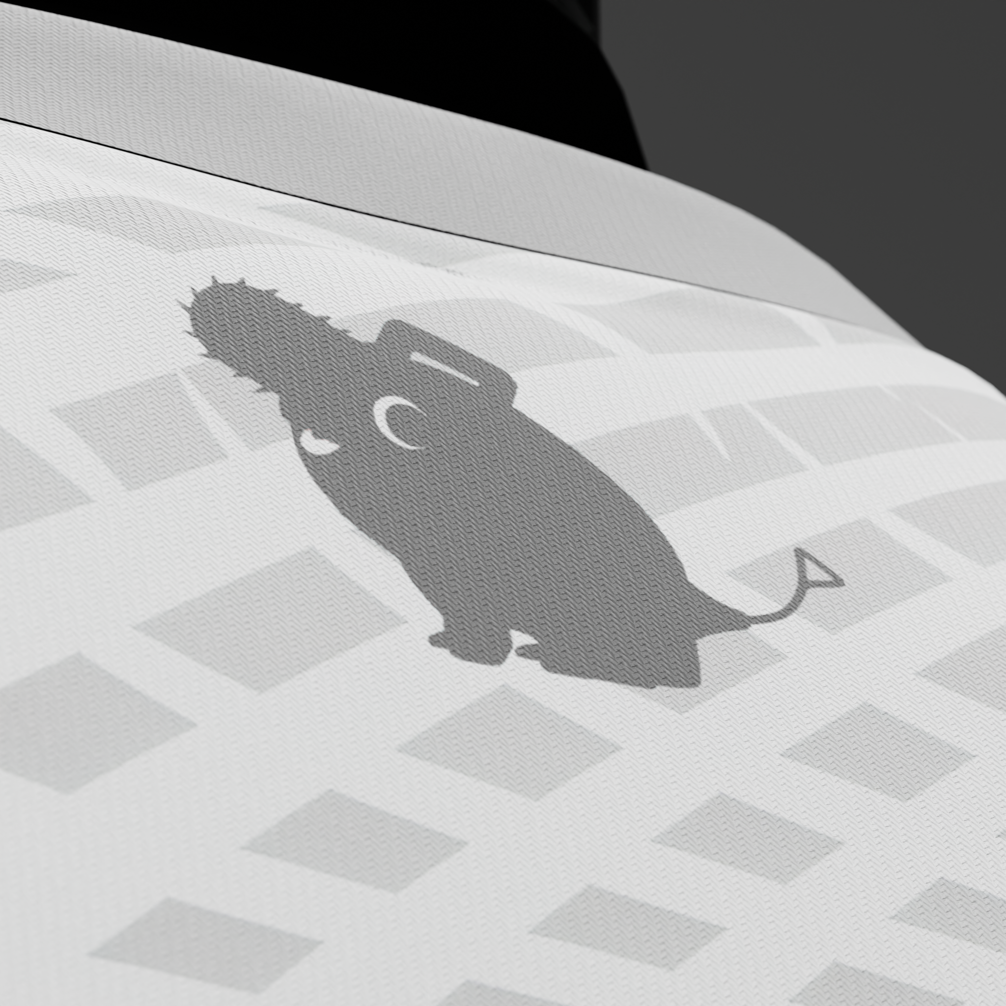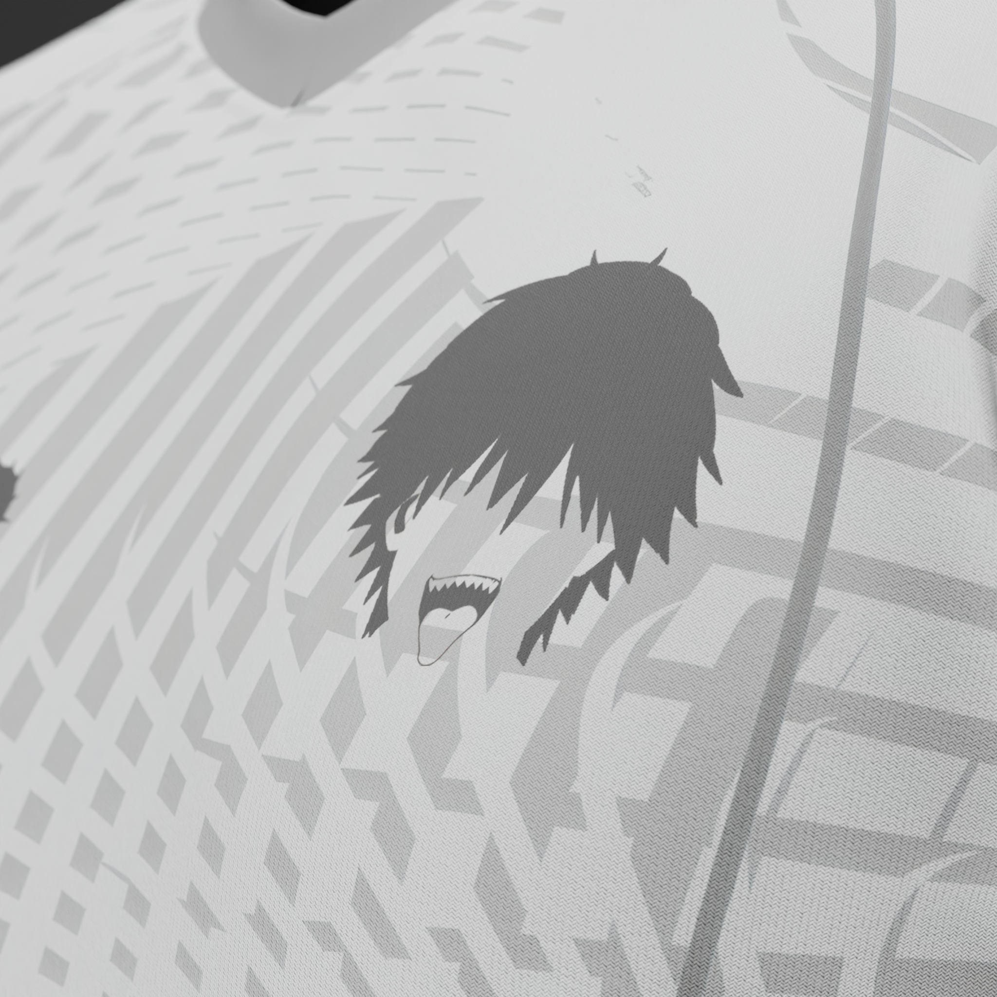 Un maillot blanc et gris inspiré de Denji, conçu pour le Devil Hunters.