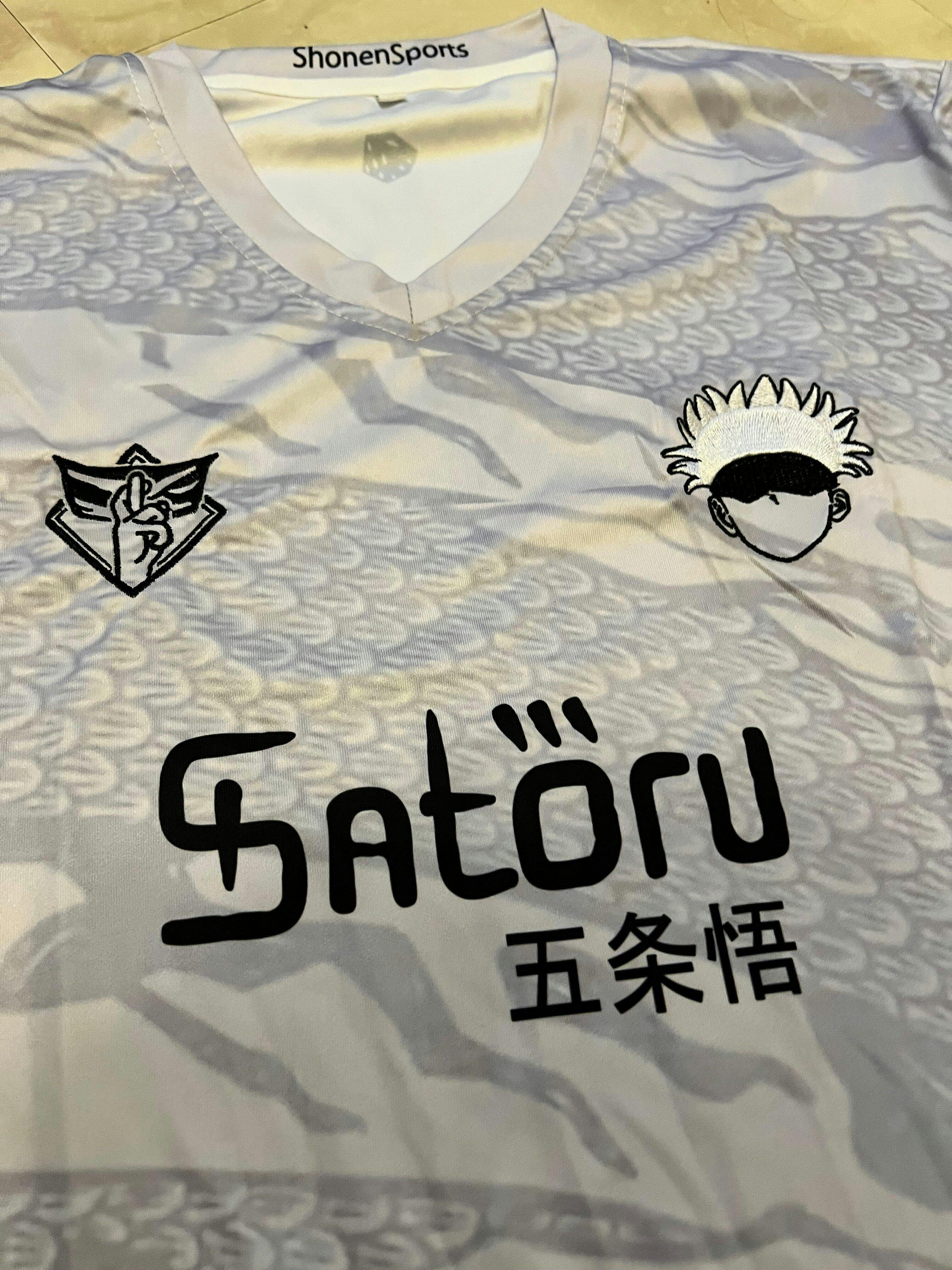 Plongez dans la puissance infinie de Gojo avec ce maillot. Héritez de sa maîtrise absolue et imposez votre style avec l’aura du plus puissant exorciste de Jujutsu Kaisen.